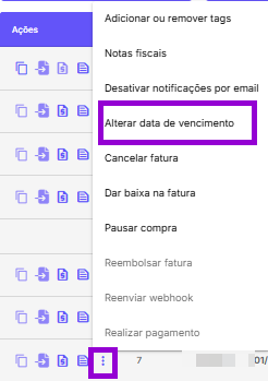 Como alterar a data de vencimento de uma fatura com status pendente?