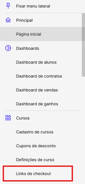 No painel da edunext, vá até a ferramenta Links de Checkout e localize o curso desejado.